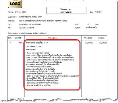 รายละเอียดสินค้าไม่จำกัดบรรทัด